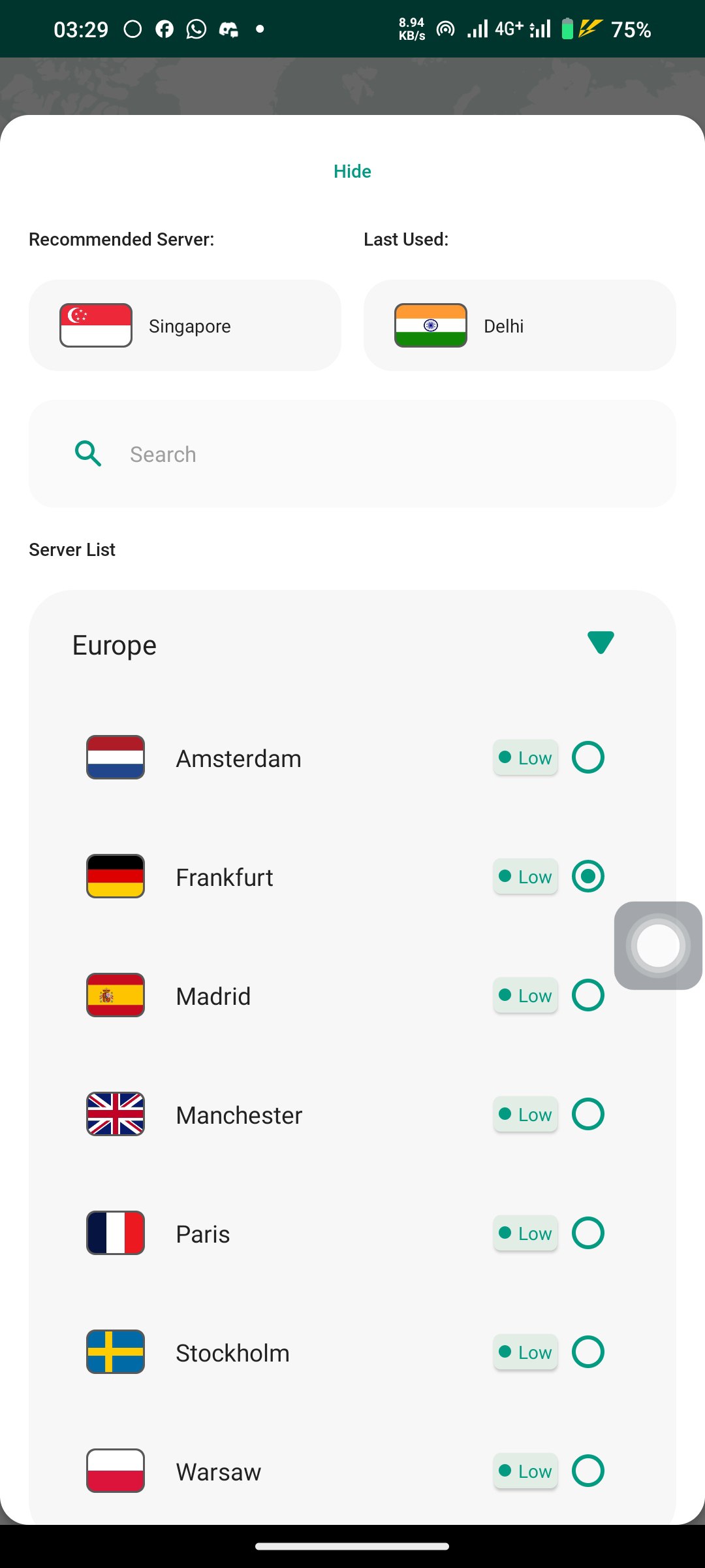 - Instant server switching